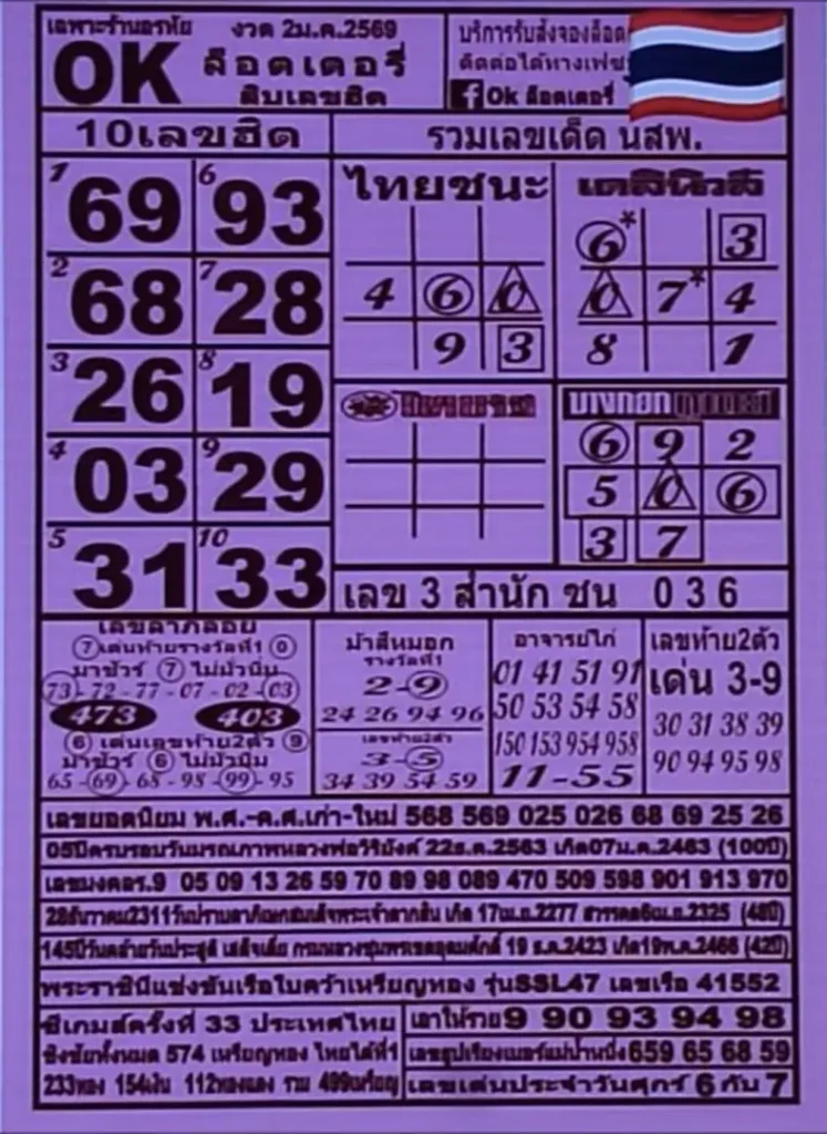 🔥 10 เลขฮิต OK ล็อตเตอรี่ งวด 2 มกราคม 2569