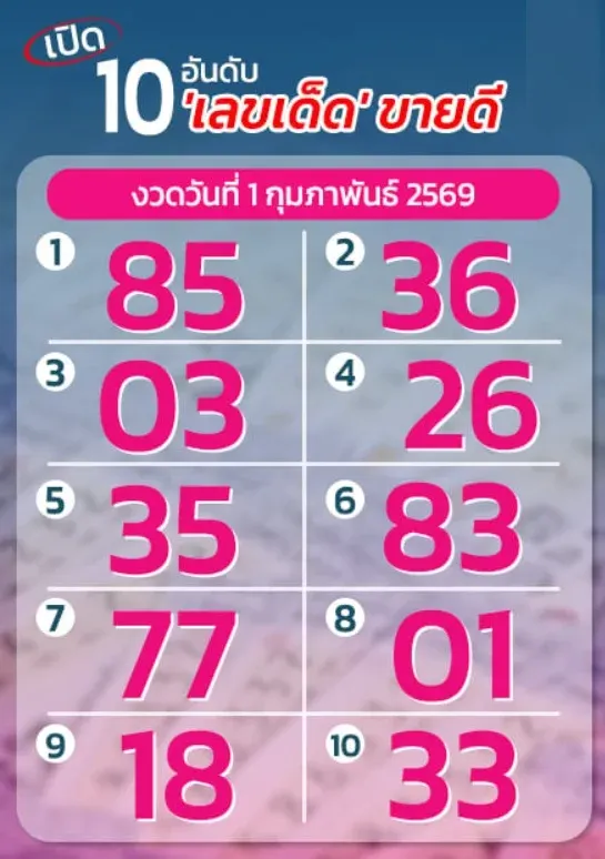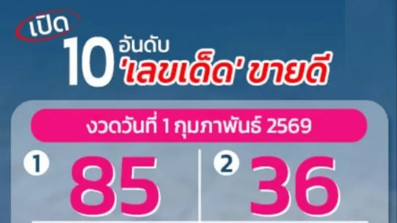 จัดเต็ม 10 อันดับเลขเด็ดขายดี งวดวันที่ 1 กุมภาพันธ์ 2569