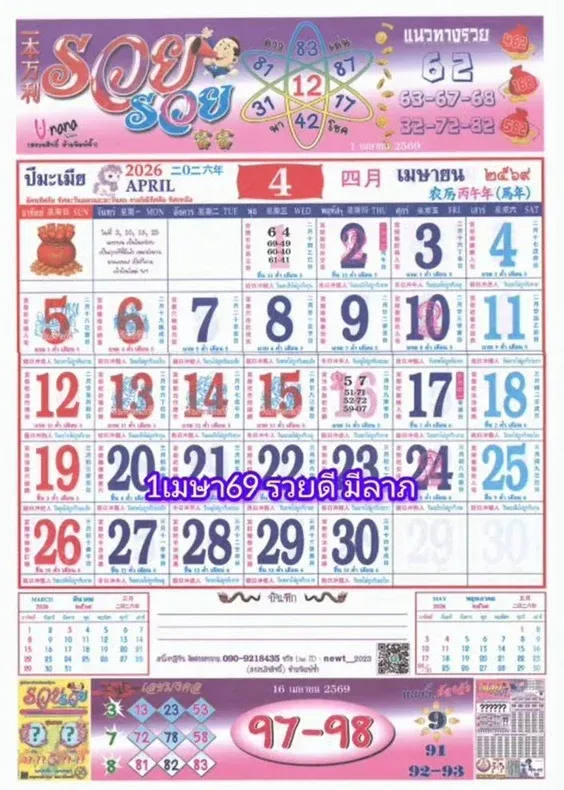 เลขเด็ดปฏิทินรวย รวย งวด 16 เมษายน 2569 เปิดโพยเด่นลุ้นเลขดัง ส่องให้ไวก่อนหวยหมดแผง